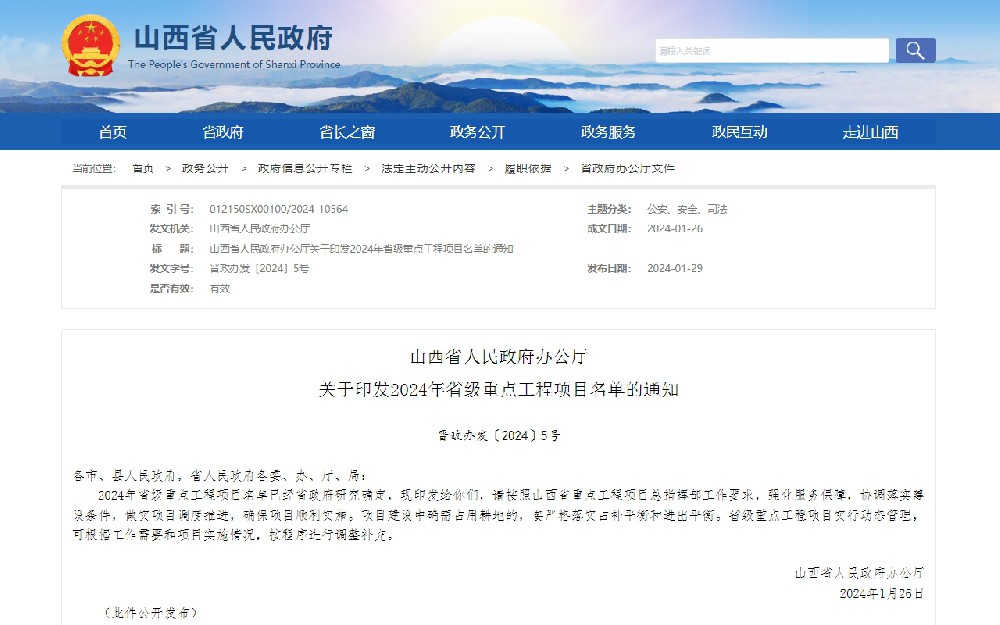 山西省人民政府辦公廳關于印發2024年省···